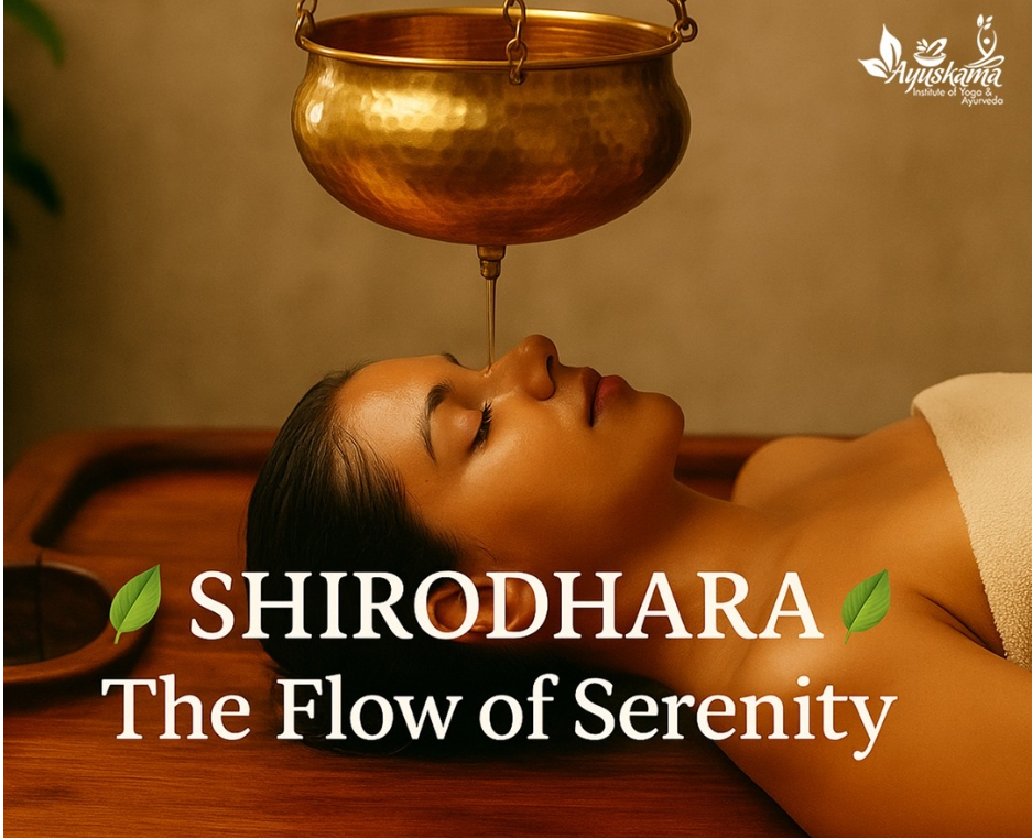 Shirodhara, one of the most soothing therapies in Ayurveda, is a traditional treatment where a continuous stream of warm herbal oil is gently poured on the forehead (Ajna chakra or